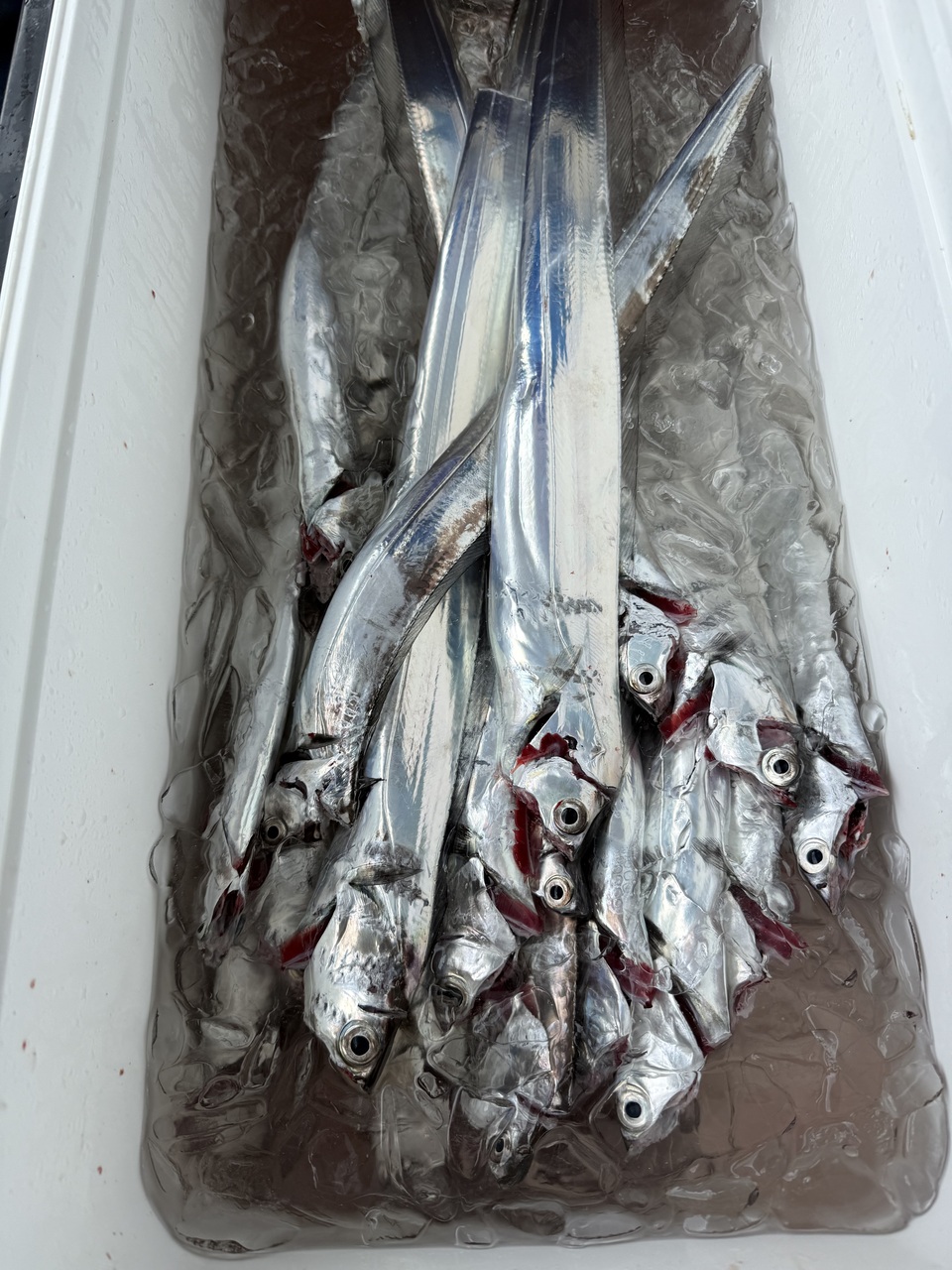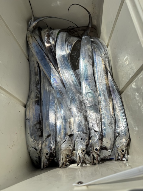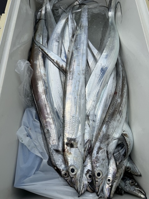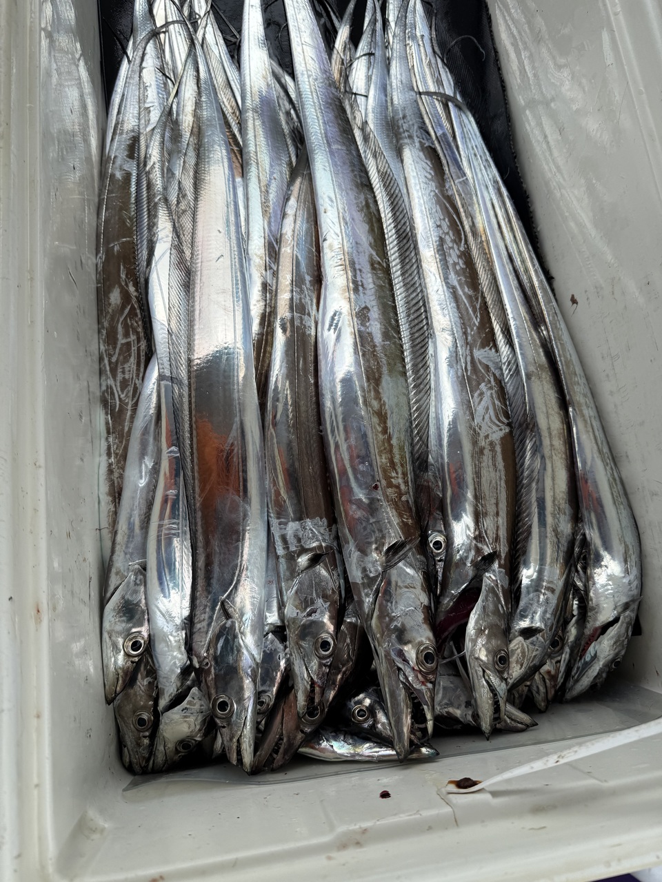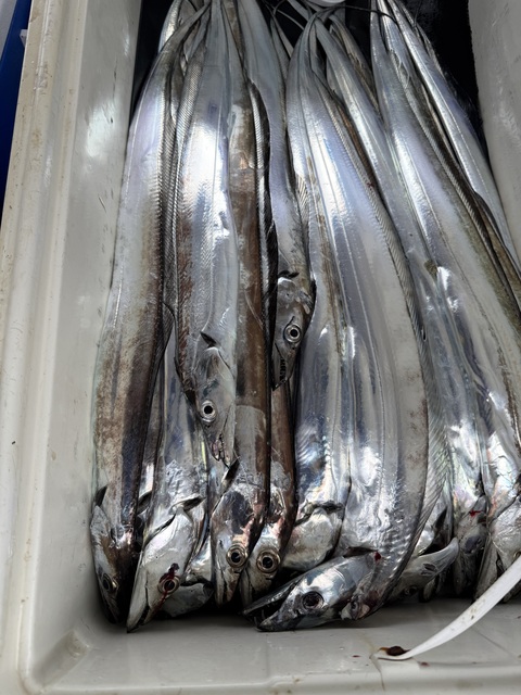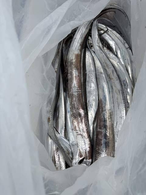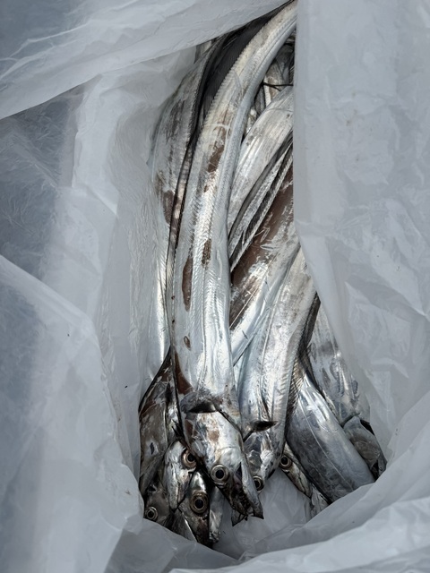 釣れたタチウオは、細くてもギラギラの輝きは一級品✨