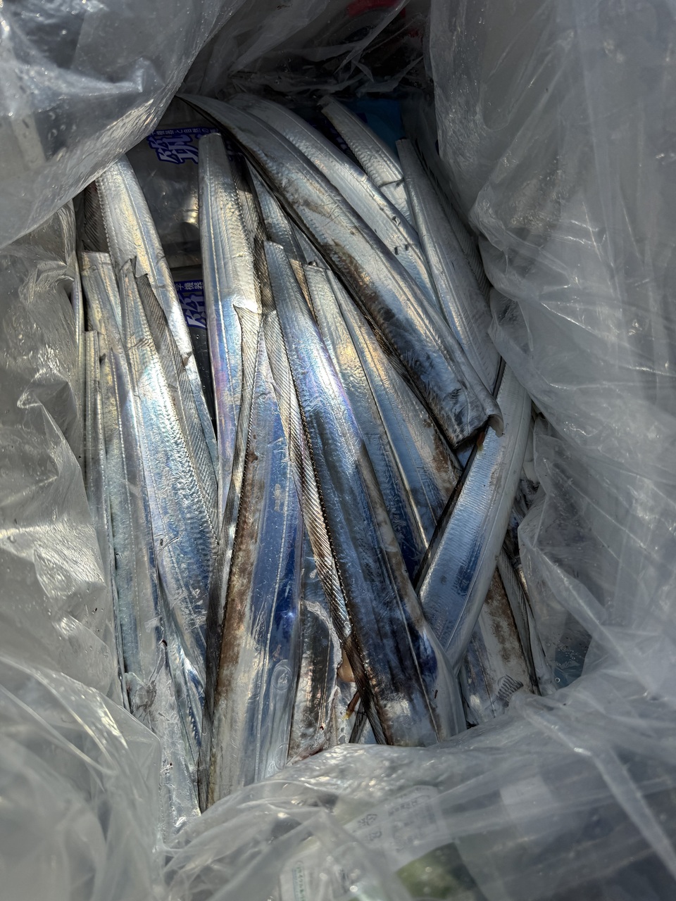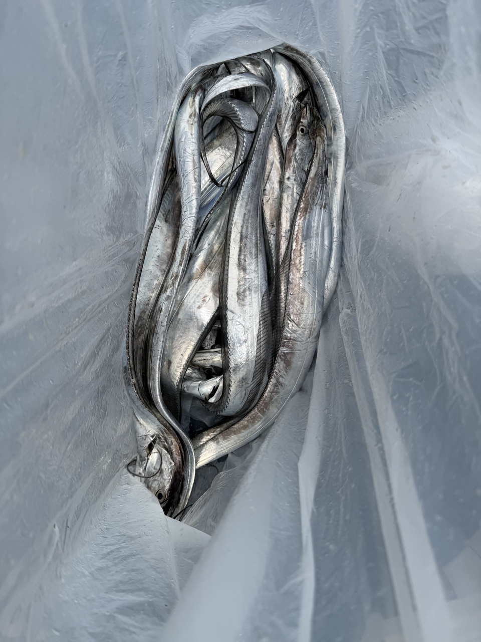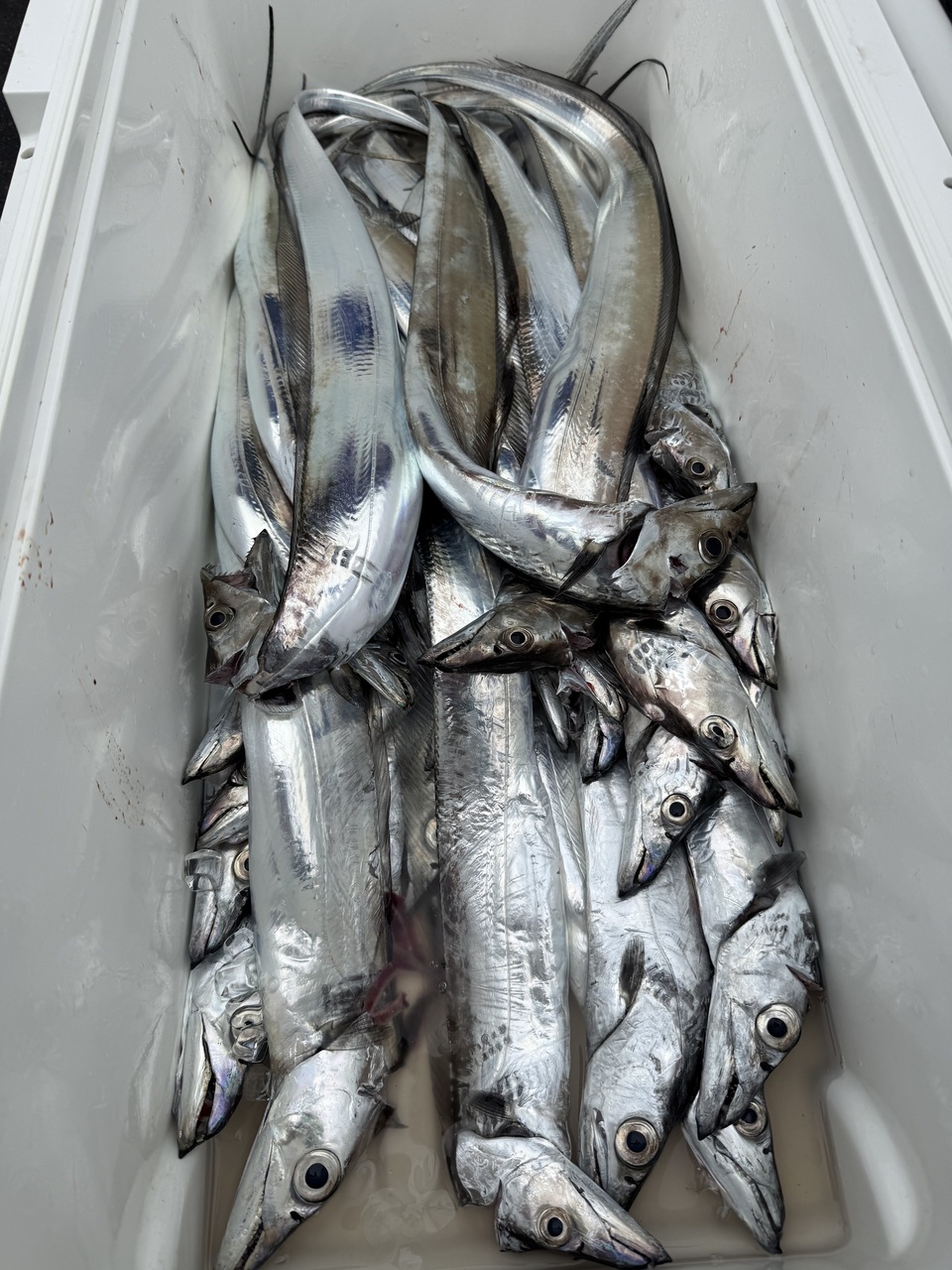 釣れたタチウオは、細くてもギラギラの輝きは一級品✨