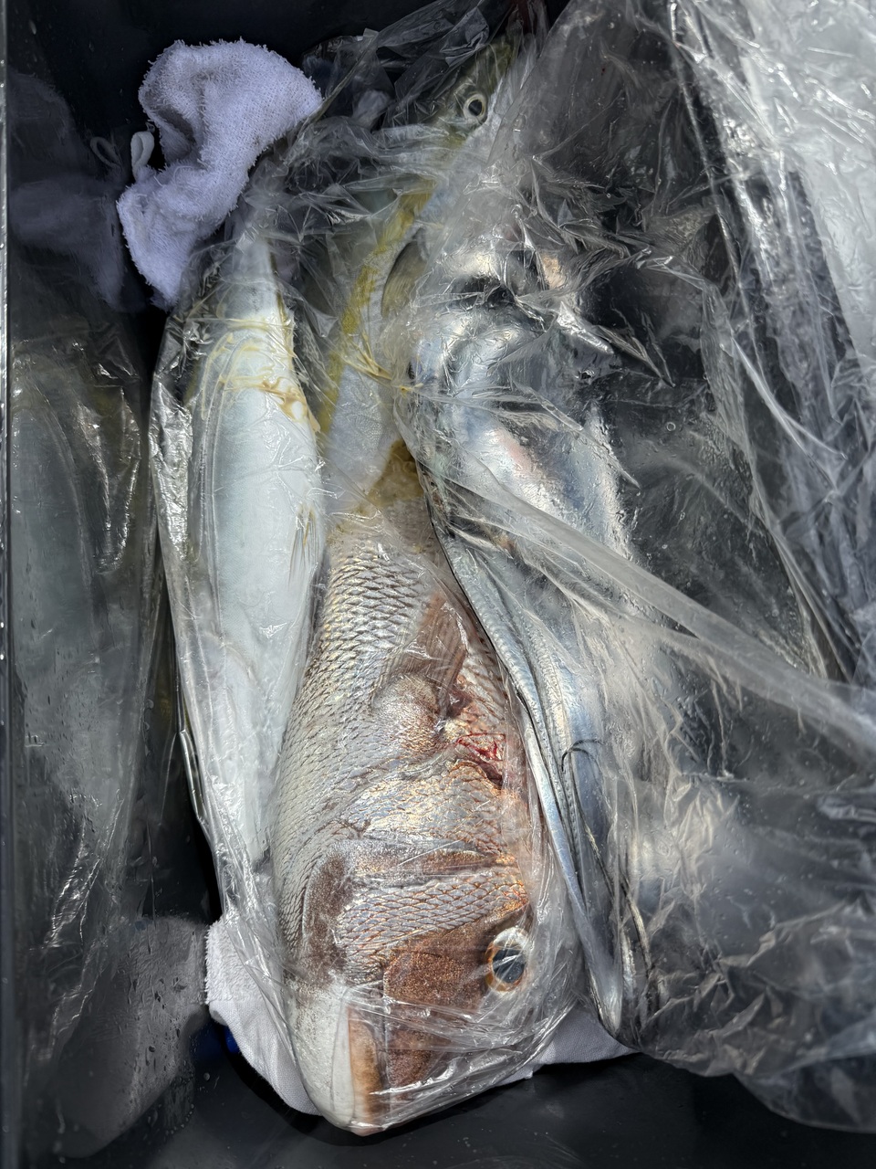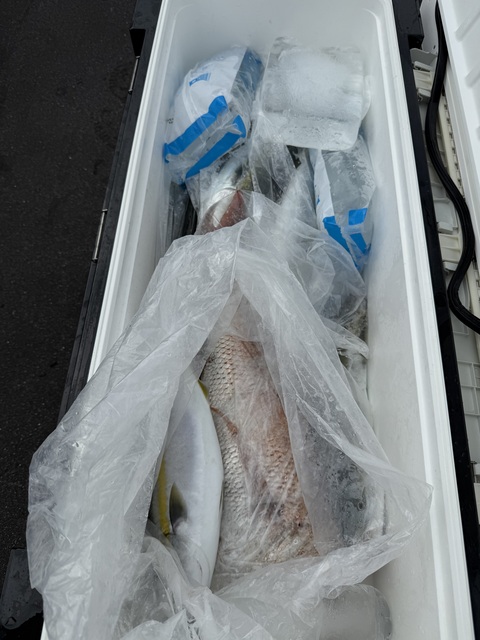 良型アコウ、ガラも混ざり、クーラーの中は色鮮やかに!🎨