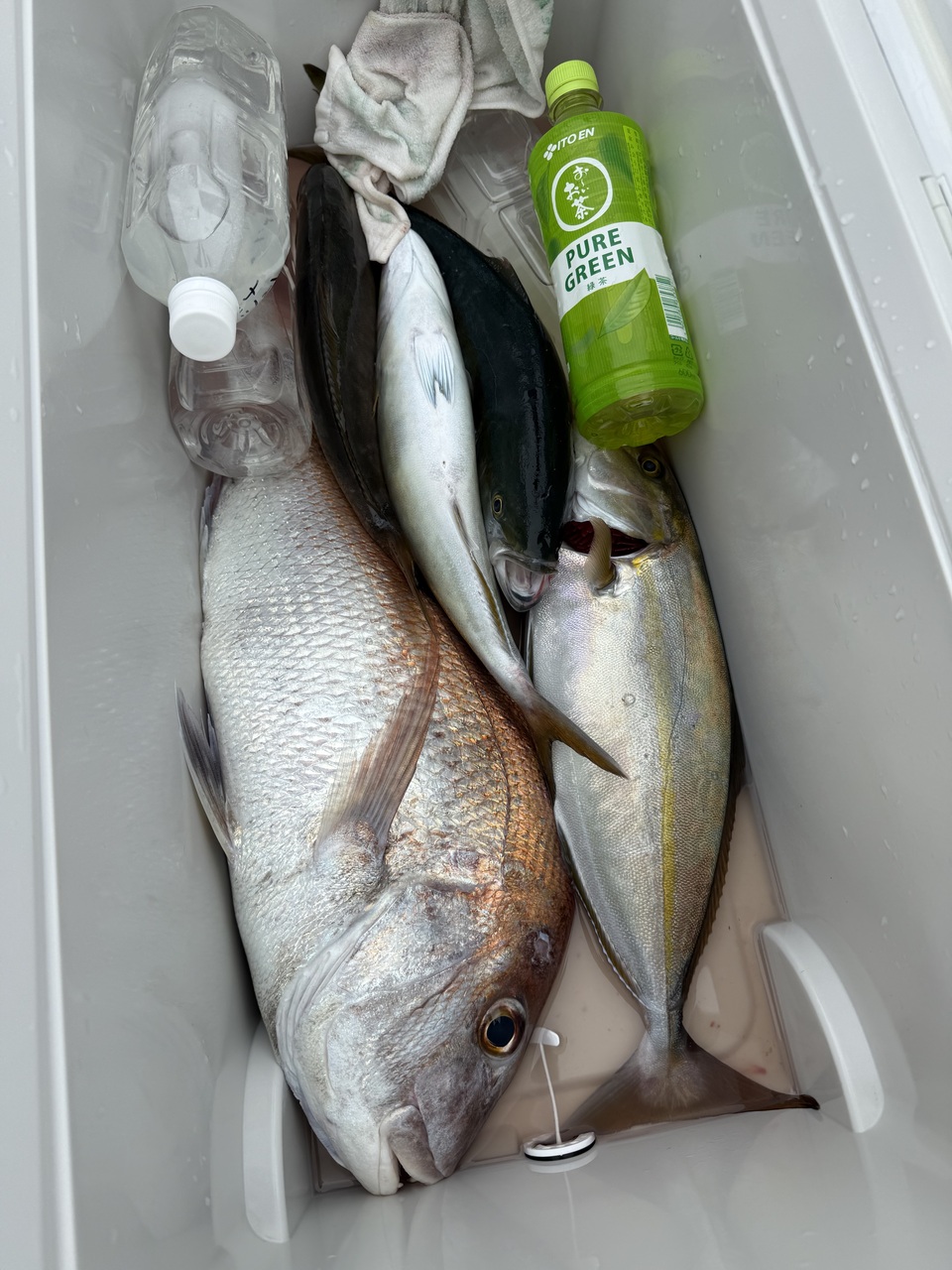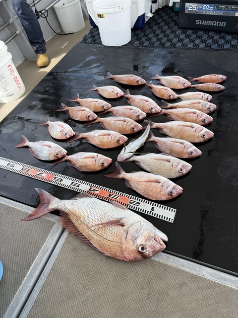 序盤からポツポツと真鯛の姿が見え、最大2.6kgを頭に計8枚✨