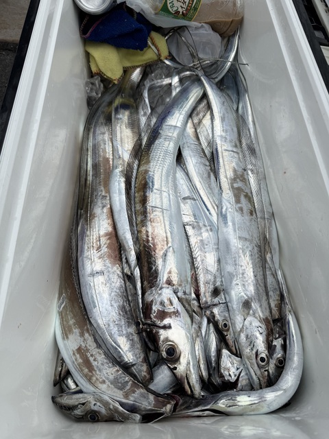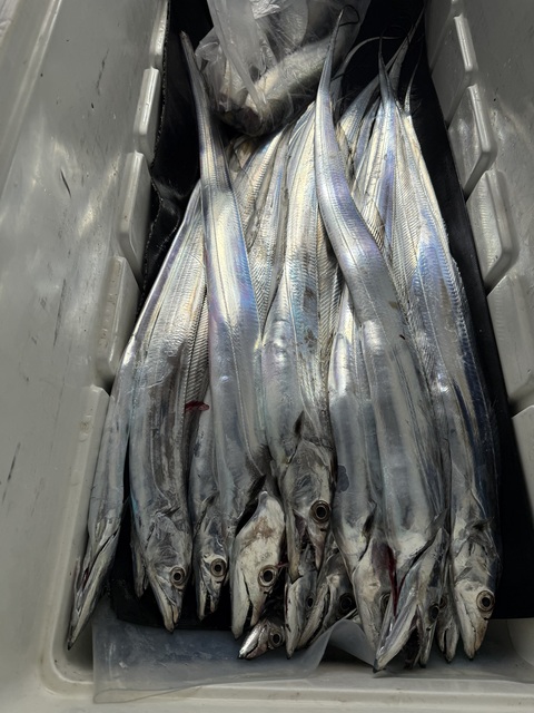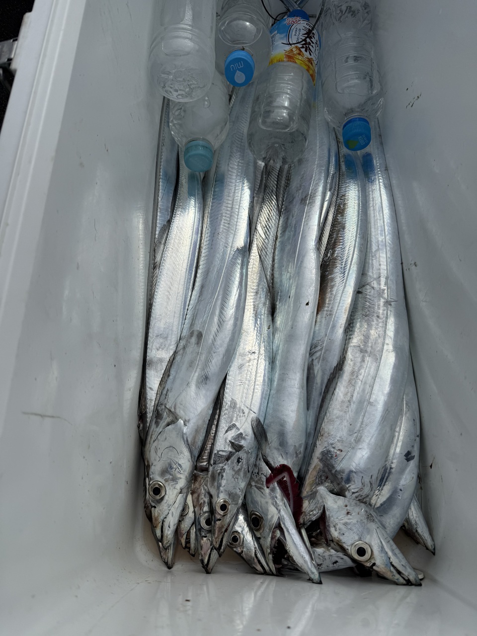 朝イチからスリムなタチウオが**ポツポツ...いや、ポコポコ?**と登場✨