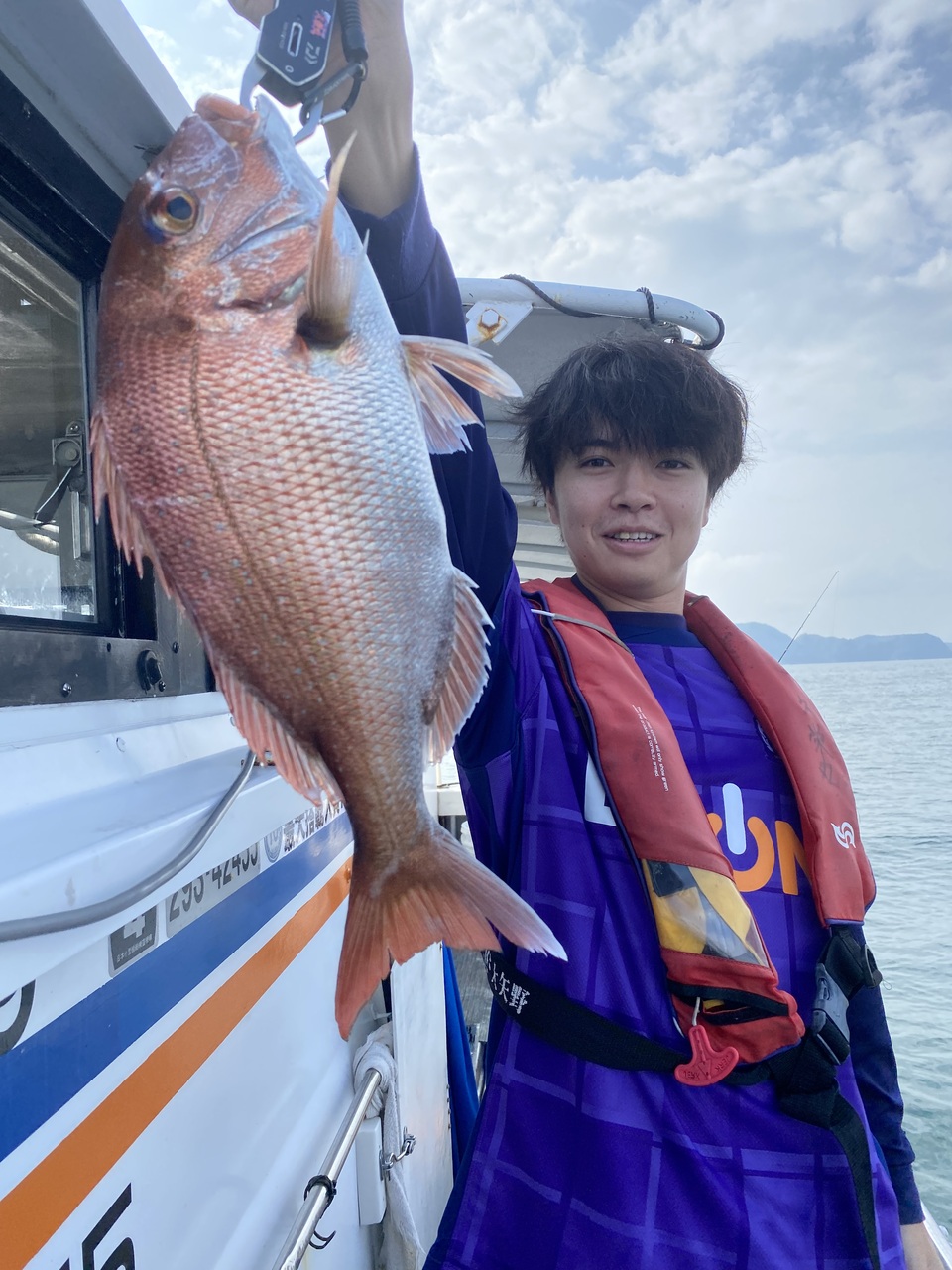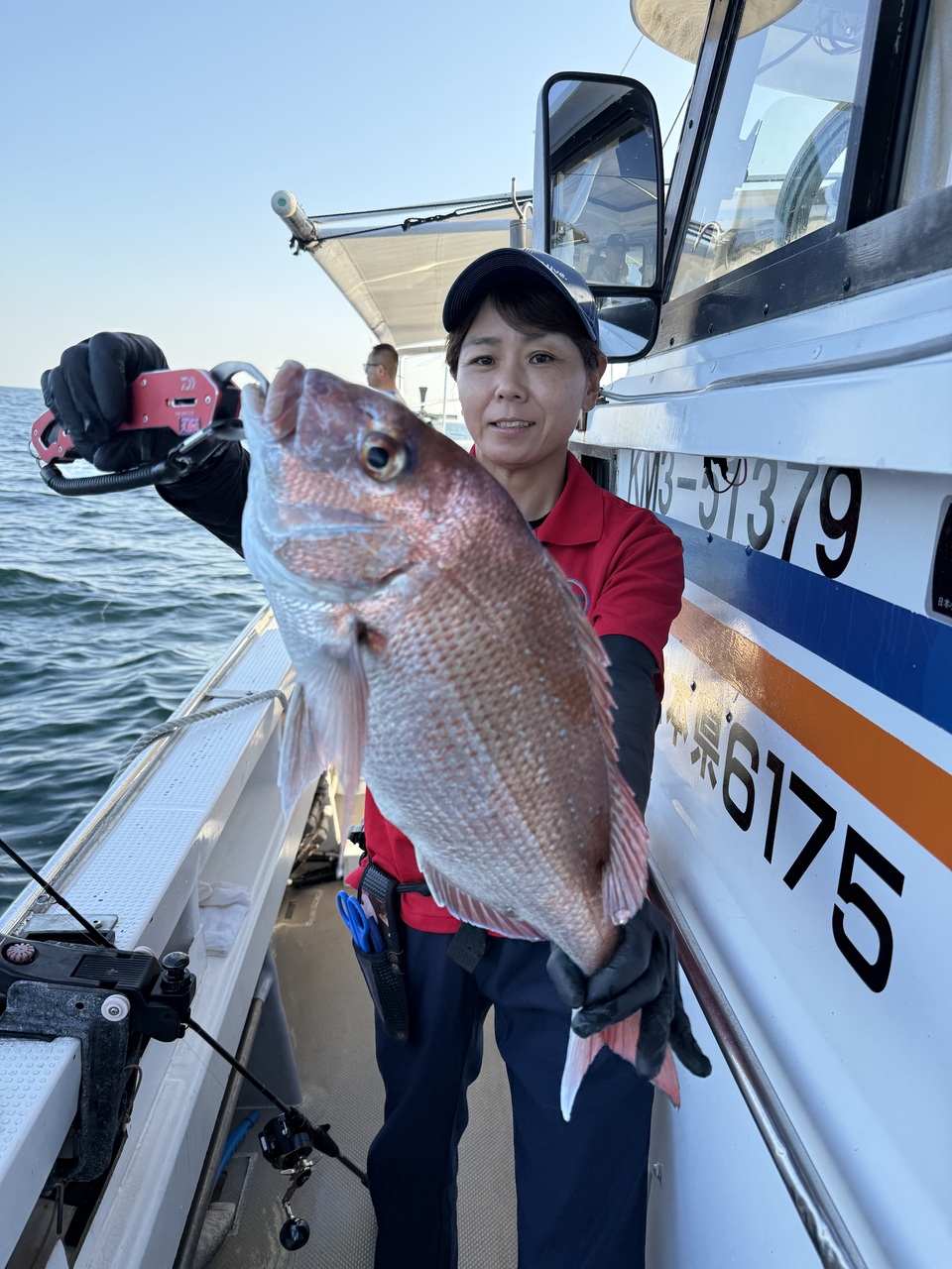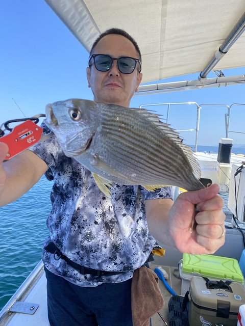 ようやく上がったのは小ぶりな真鯛!「まずはご挨拶」といった様子でした🐟✨