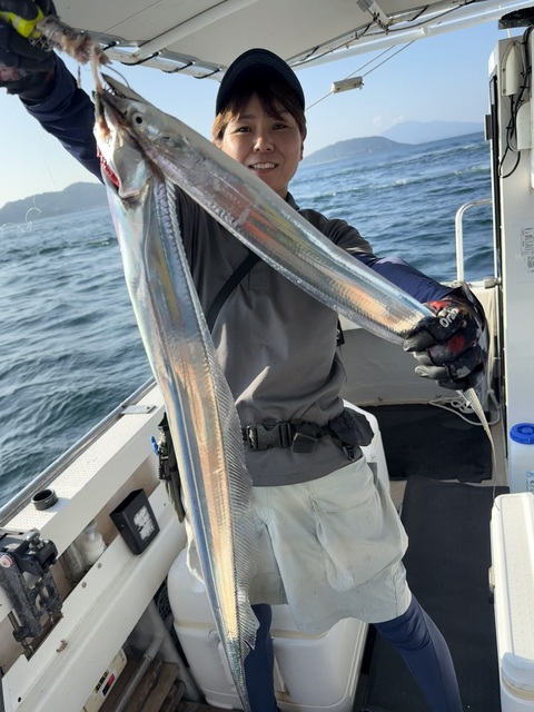 どうも、船上カメラマンです(`・ω・́)ゞ🎣 本日はタチウオ釣りで出船しました! ポイント到着、アタリはあるものの...なかなかフッキングせず💦 ようやくあがってきたと思えば、小型中心の展開。 しかし!そんな中、まさかの“シングルフックでWヒット”というミラクル発生✨ タチウオたちも思わず二度見したかもしれません(笑) 渋い状況の中、最後まで粘っていただきありがとうございました! 暑い中、本日もお疲れ様でした(`・ω・́)ゞ🔥