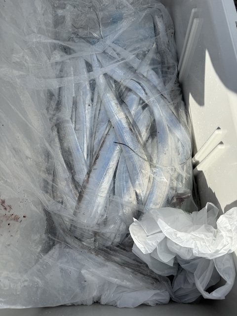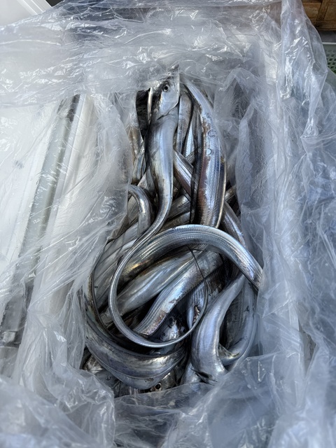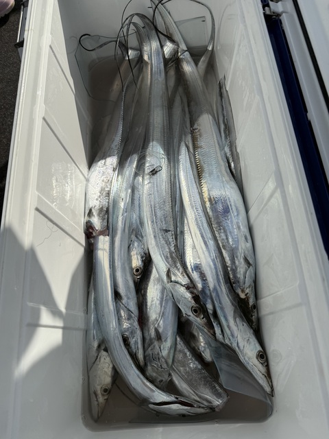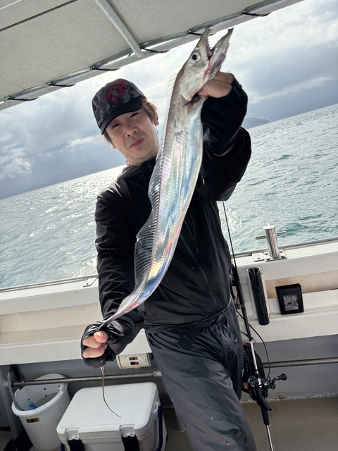 どうも、船上カメラマンです(`・ω・́)ゞ🎣 本日はタチウオ釣りで出船いたしました!⚓️ ポイント到着後はアタリ多く、 よく掛かり、よく切られる一日💦 タチウオらしいスリリングな展開が続きました。 サイズは小型主体ながらも、 終始ポツポツと釣果があり、 雨の中でも皆様しっかりと竿を出されていました。 ご乗船いただいた皆様、 雨の中おつかれ様でした。
