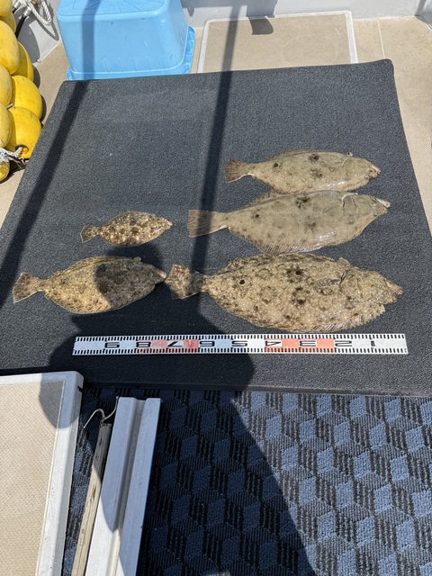 お客様なしの為、妻と2人でヒラメ釣り出船 ポイント到着、アタリあるもののあがってくるのはガラばかり😓 ですが! 75cm、3.8kgの座布団ヒラメあがりました 日ムラありますがまだまだでかいのが潜んでいそうです。 座布団ヒラメ狙ってみてはいかがでしょうか? ご予約お待ちしてます。