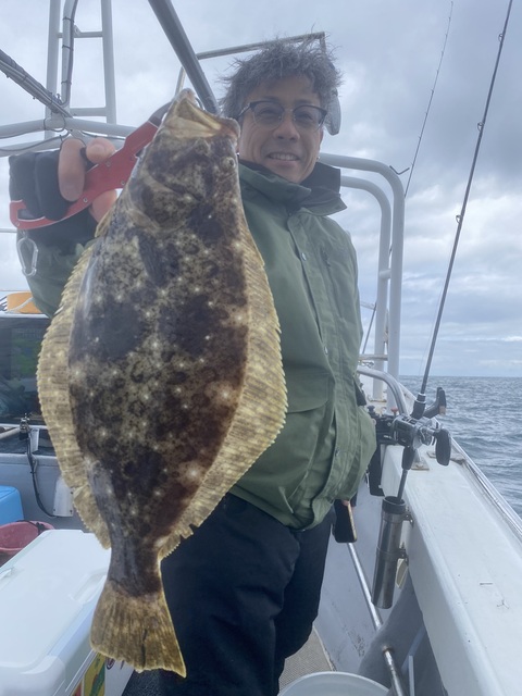 どうも、船上カメラマンです(`・ω・́)ゞ ヒラメ釣りで出船しました ポイント到着、アタリあるものの中々 あがらず... 最初にあがってきたのは90cmオーバーの シーバス😅 終始厳しい釣行となりました。 最大70cmヒラメ、シーバスの釣果 でした。 おつかれ様でした。